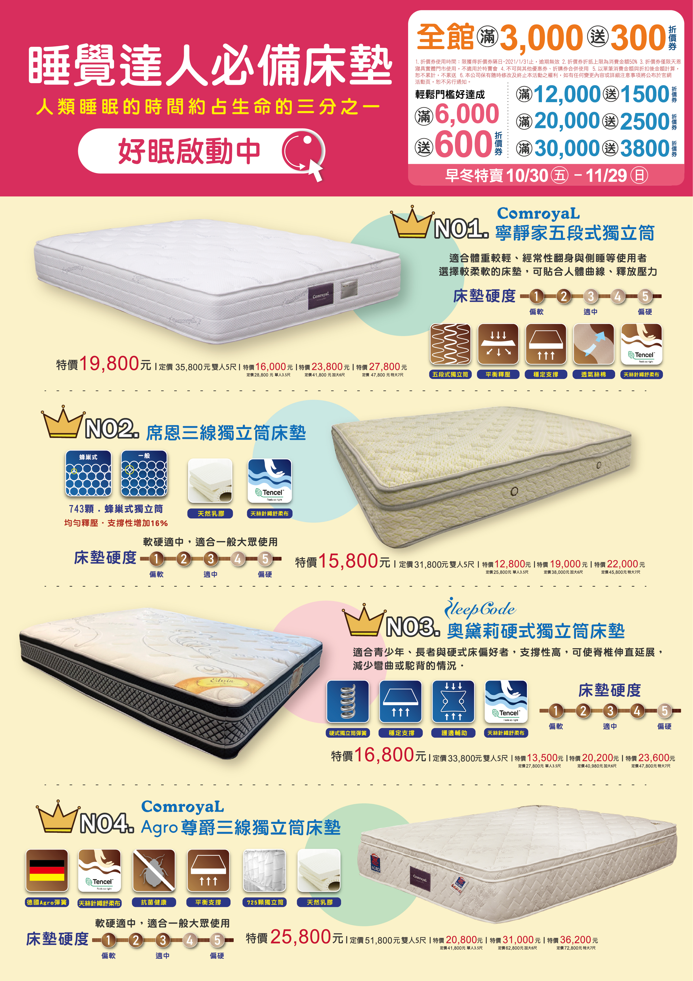 *北部門市床墊運費另計,請洽詢現場服務人員